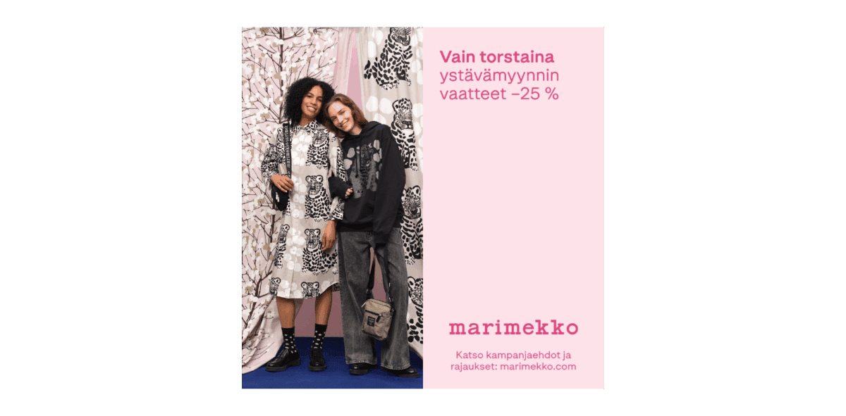 Ystävämyynti on täynnä edullisia designlöytöjä. Vain torstaina kaikki ystävämyynnin vaatteet –25 %.